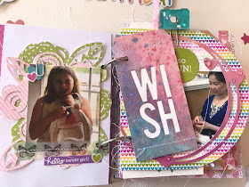 The spread below includes cut files from The Cut Shoppe and stickers from the Fairy Tales Mini Icons sticker sheet..  The "wish" tag is a very old Heidi Swapp watercolor die cut tag from my stash.  I used a mix of Gansai Tambi Pearl Colors and Prima Metallic watercolors to paint the tag and added some stitching with my sewing machine.